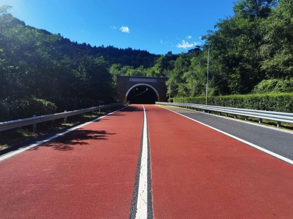 技術(shù)一:彩色聚氨酯抗滑耐磨薄層 (1)技術(shù)簡介 彩色聚氨酯抗滑耐磨薄層是采用雙組份彩色聚氨酯作為膠結(jié)料,將其刮涂在瀝青(或水泥)路面上,并均勻撒布彩…