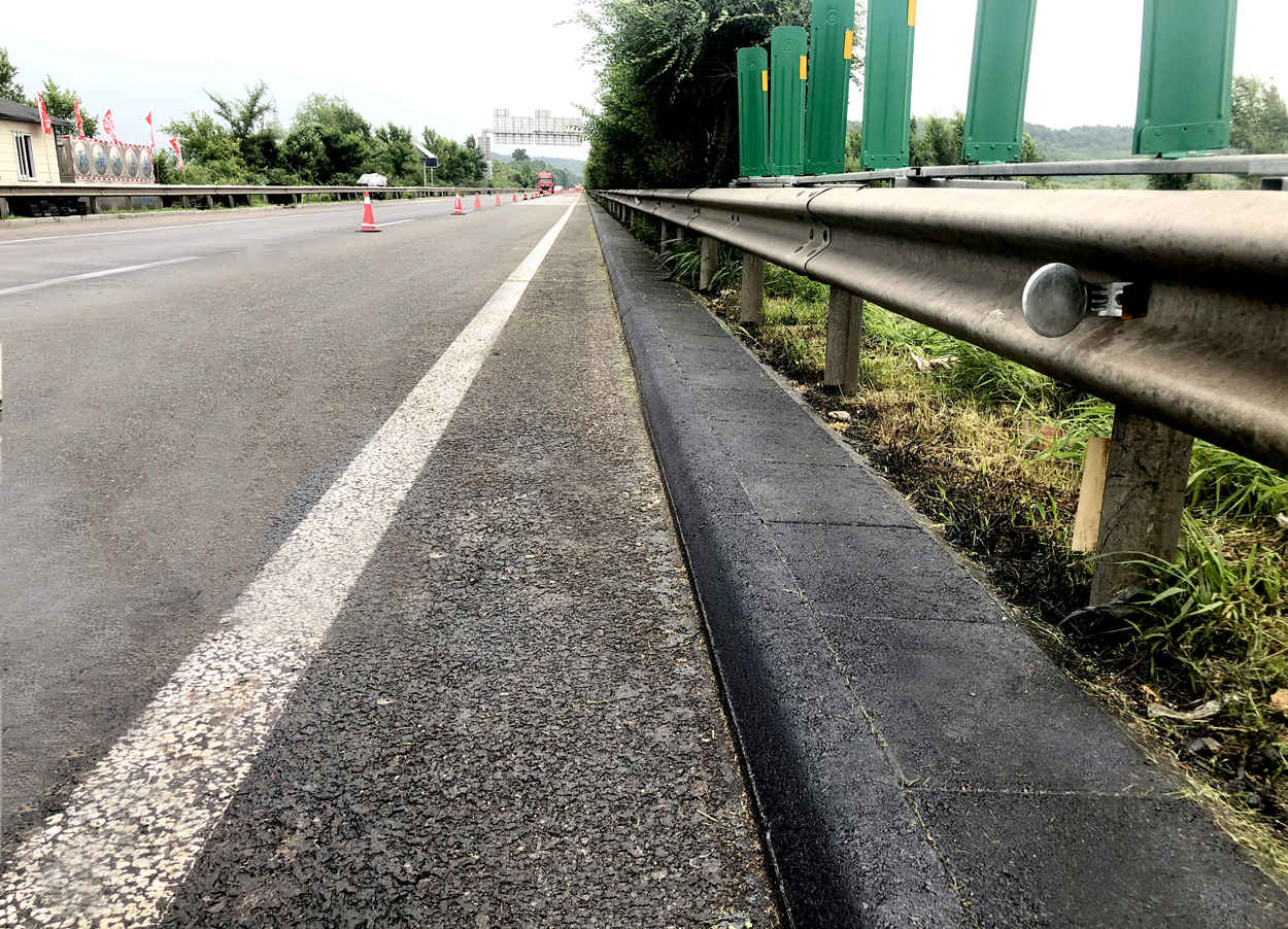 RAP熱再生預(yù)制構(gòu)件技術(shù)是將瀝青混合料回收料(RAP)經(jīng)過(guò)破碎、篩分,加入再生劑、改性劑、纖維增強(qiáng)劑、新瀝青混合料等材料,高溫拌和后經(jīng)生產(chǎn)線振動(dòng)壓制成型的再生預(yù)制路緣石、泄水槽(或急流槽)、排水溝、防護(hù)蓋板、步道磚等構(gòu)件,舊料利用率可達(dá)85%以上,是一種全新的、集防護(hù)與功能性于一體的公路附屬設(shè)施工程建養(yǎng)技術(shù),具有優(yōu)異的力學(xué)及路用性能,高強(qiáng)耐久,防腐能力極強(qiáng),完全滿足公路附屬設(shè)施功能性使用要求。解決了常規(guī)路緣石、泄水槽(或急流槽)、排水溝等附屬設(shè)施維修與更換難度大,防腐蝕性、耐久性較差等應(yīng)用難題,降低公路附屬設(shè)施的建養(yǎng)成本,提升使用品質(zhì)。